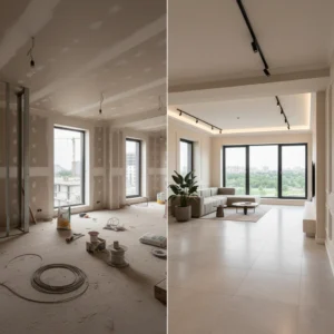 Unter Renovierung versteht man die optische und technische Auffrischung von Wohn- und Geschäftsräumen. Ziel ist es, veraltete, abgenutzte oder beschädigte Bereiche wieder in einen gepflegten und modernen Zustand zu versetzen. Dazu zählen Malerarbeiten, Bodenverlegung, Austausch von Türen und Fenstern sowie kleinere Reparaturen. Eine fachgerechte Renovierung sorgt nicht nur für ein schönes, sauberes Wohngefühl, sondern trägt auch zur Wertsteigerung und Langlebigkeit der Immobilie bei.